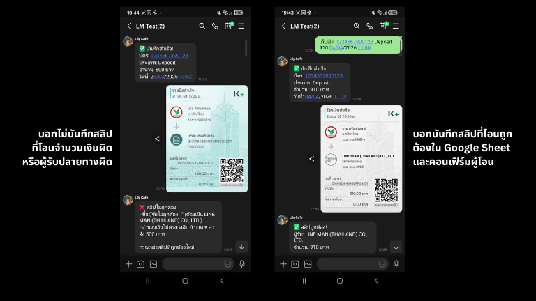 เช็คว่าผู้รับ = "LINE MAN" + ยอดตรงกับที่บันทึก