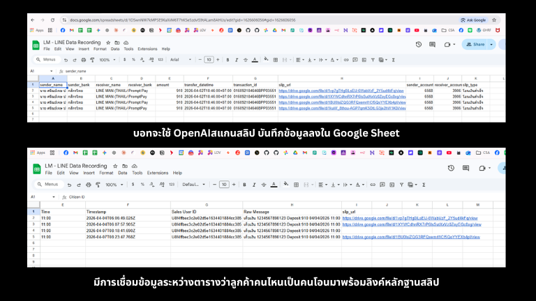 | สลิปเข้ามาไม่ได้ตรวจ | AI ตรวจทุกใบ ✅/❌ + เก็บ URL หลักฐาน |